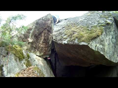 Ytterligare två problem i nya området. Båda problemen är lite speciella. Hammarattacken ss, 5c, ligger i en liten grotta. Den börjar med en fist och fötterna i en alldeles för stor spricka, sedan lättare. Rättspsykiatrisk vård ss, 6a, rundar en skiva som hänger i ett schakt. Ståstarten är 5c. Har börjat skriva på en förare, 20 problem finns med ännu så länge.